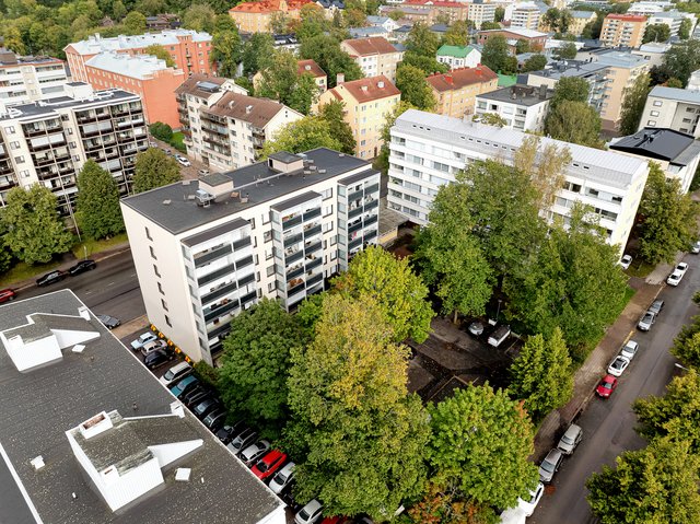 - 11.6.2025 huoneiston yläpuolella oleva kattokaivo mennyt tukkeeseen. Tukoksesta muodostunut katolle lammikko, josta vesi noussut katon tarkastusluukun reunan yli yläpohjaan. Vahinkohetkellä huoneiston katosta tippunut vettä ontelolaatan sauman kohdalta. Vesikaton kattokaivo avattu, jotta vesi saatu poistumaan katolta. Huoneiston vauriot korjattu asianmukaisesti taloyhtiön toimesta. Tapahtumasta tehty Varsinais-Suomen Kiinteistökuivaus Oy:n toimesta raportti.