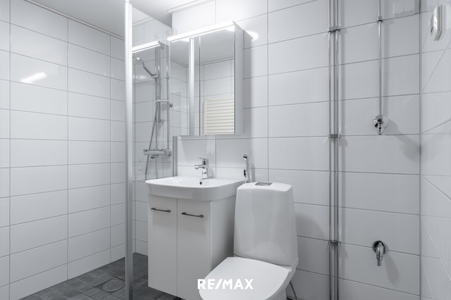 - WC-istuin, suihku, peilikaappi, allaskaappi, suihkuseinä, ja pesukoneliitäntä