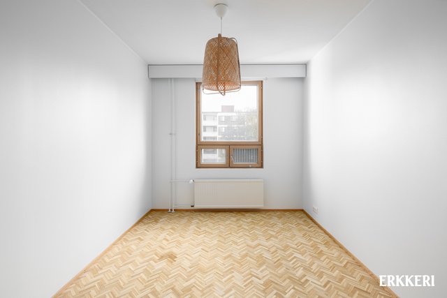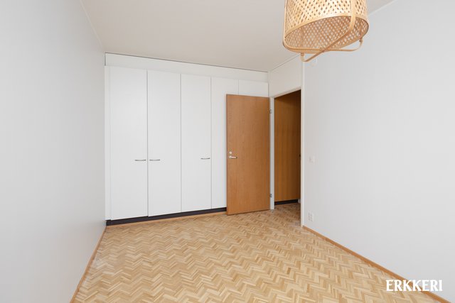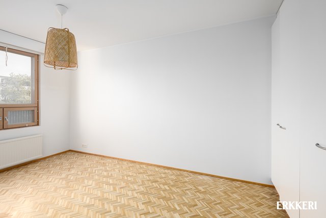 - Tilava makuuhuone, mihin parisänky mahtuu hyvin. Makuuhuoneessa runsaasti kaapistoja. Kivat suojaisat näkymät.