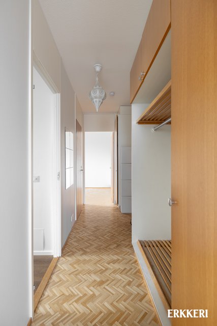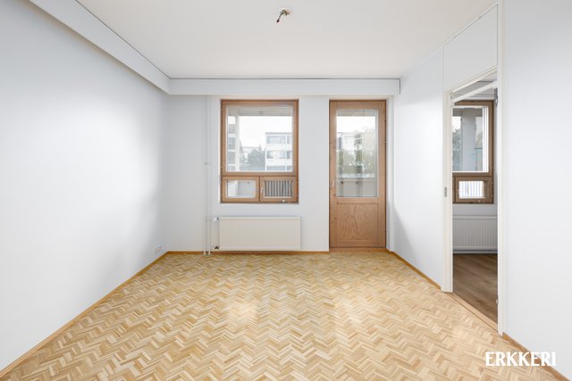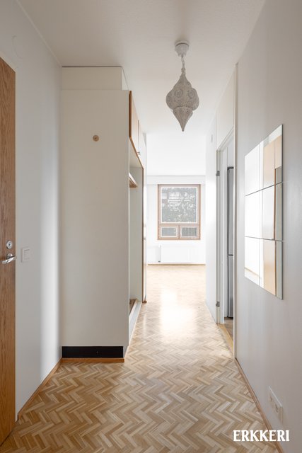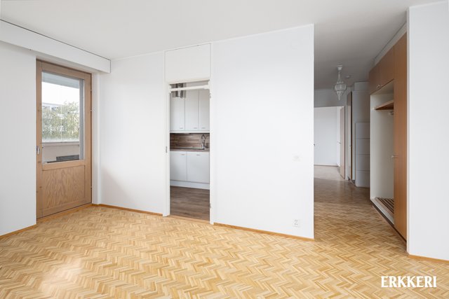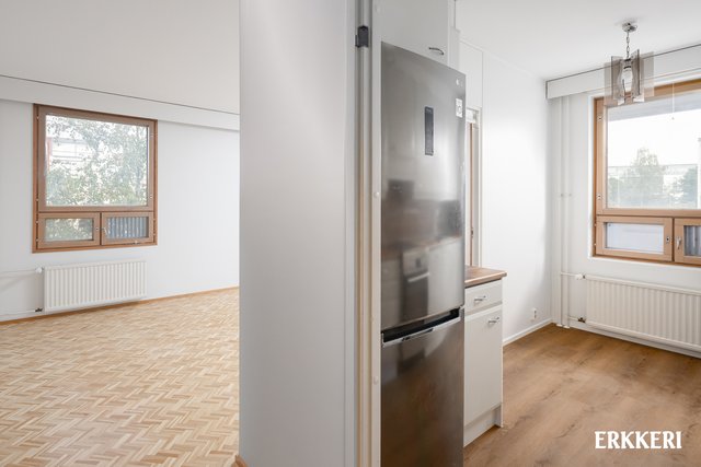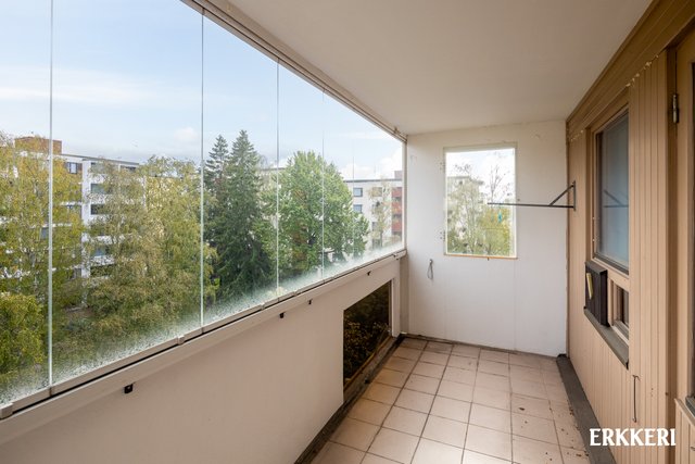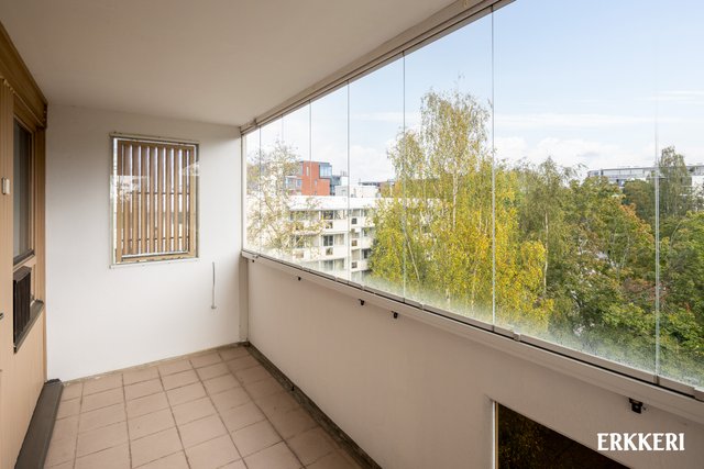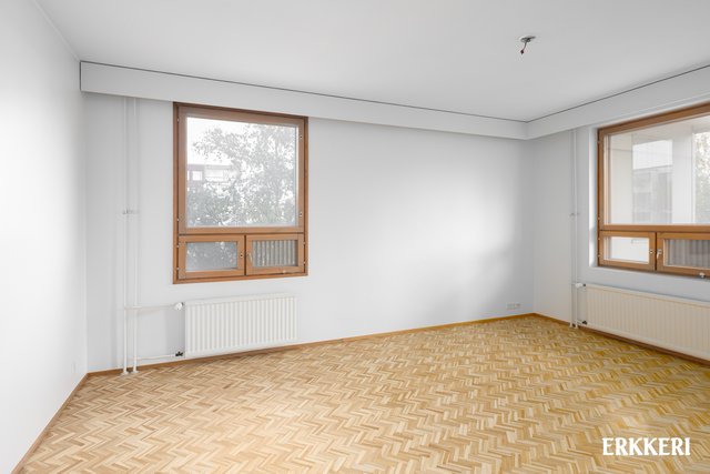 - Hyvänkokoinen olohuone, mistä käynti tilavalle lasitetulle parvekkeelle ja keittiöön. Huoneisto on päätyhuoneisto ja olohuoneesta ikkunat kahteen suuntaan. Hieno parkettilattia.