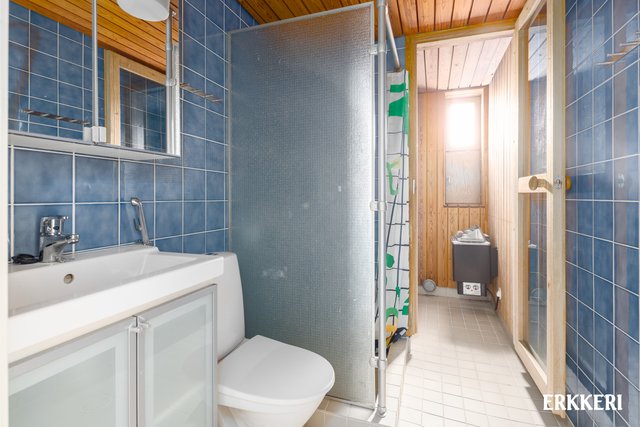 - Toimiva ja tilava kylpyhuone omalla sauanalla.