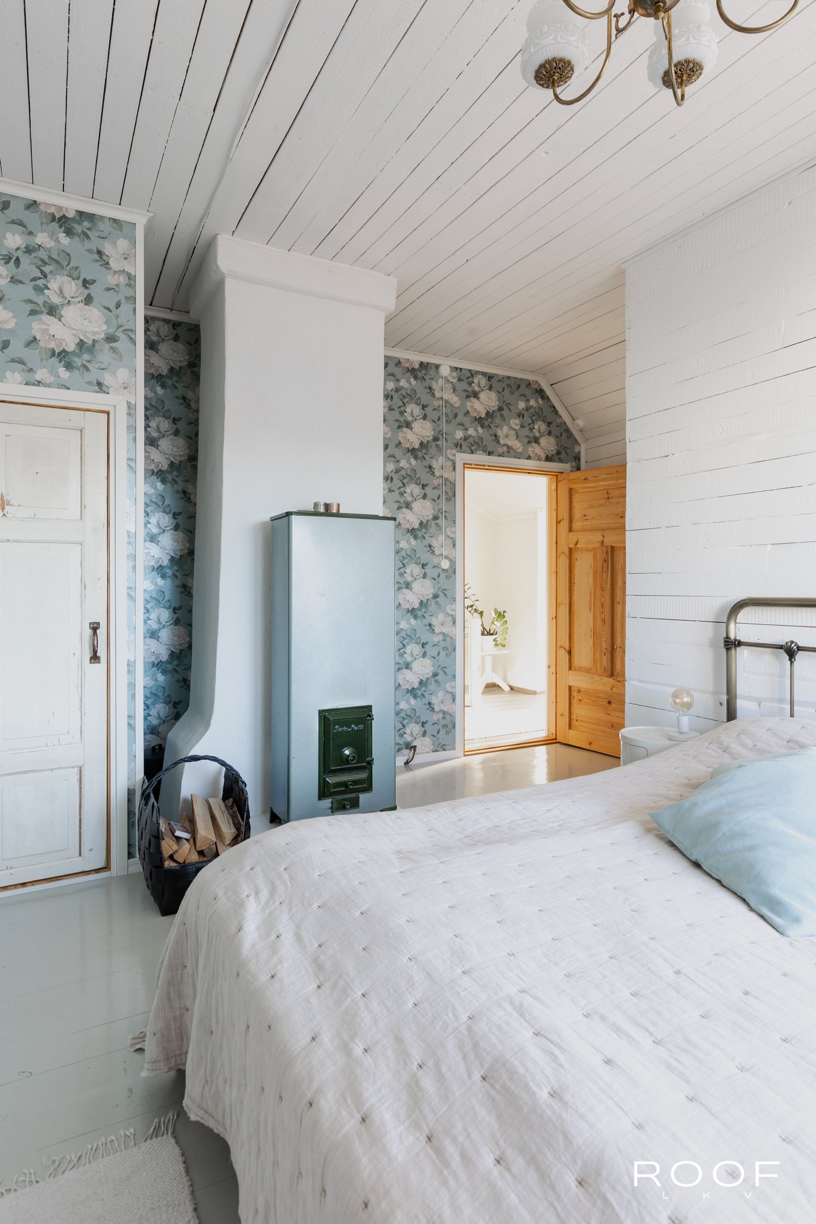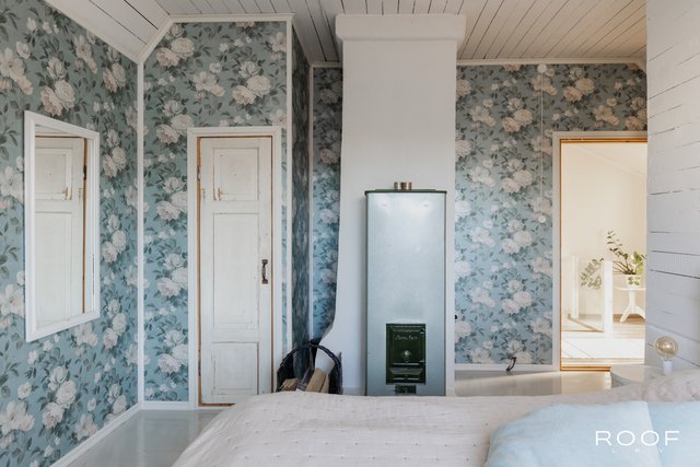 - Alakerran makuuhuoneessa/ruokailutilassa pönttöuuni, yläkerran isommassa makuuhuoneessa Porin Matti.