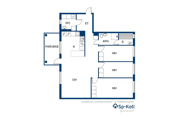 4h+avokeittiö+kph/sauna+wc+lasitettu parveke