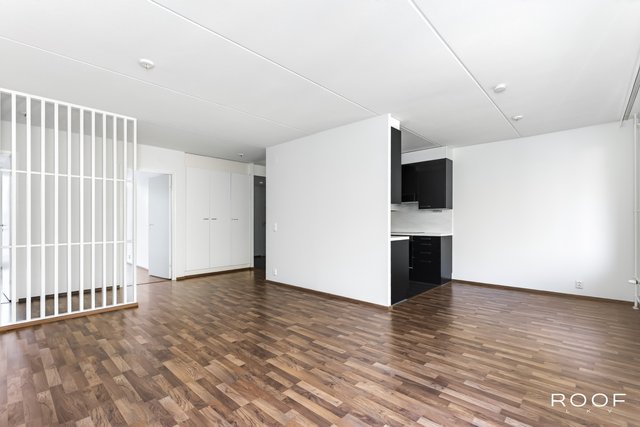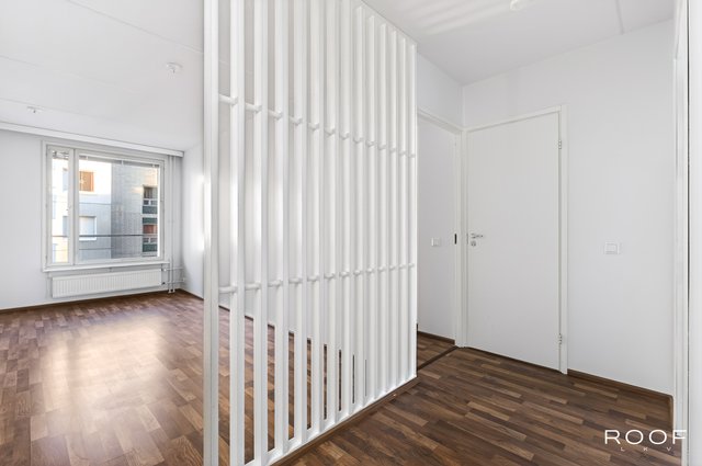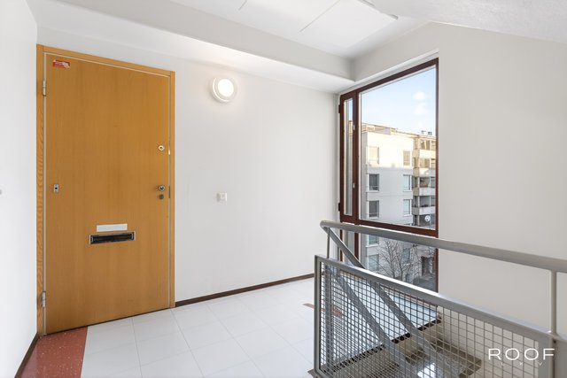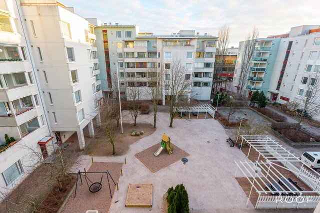 Asunnon pohjaratkaisu on toimiva ja valoisa, ja se sijaitsee 5/6 kerroksessa – talossa on hissi. Olohuoneesta on käynti lasitetulle parvekkeelle, josta on näkymät Harmajankadulle ja Ruohikseen. Kaksi ranskalaisin parvekkein varustettua makuuhuonetta avautuvat rauhalliselle sisäpihalle, jossa on vehreitä istutuksia ja leikkipaikkoja lapsille.