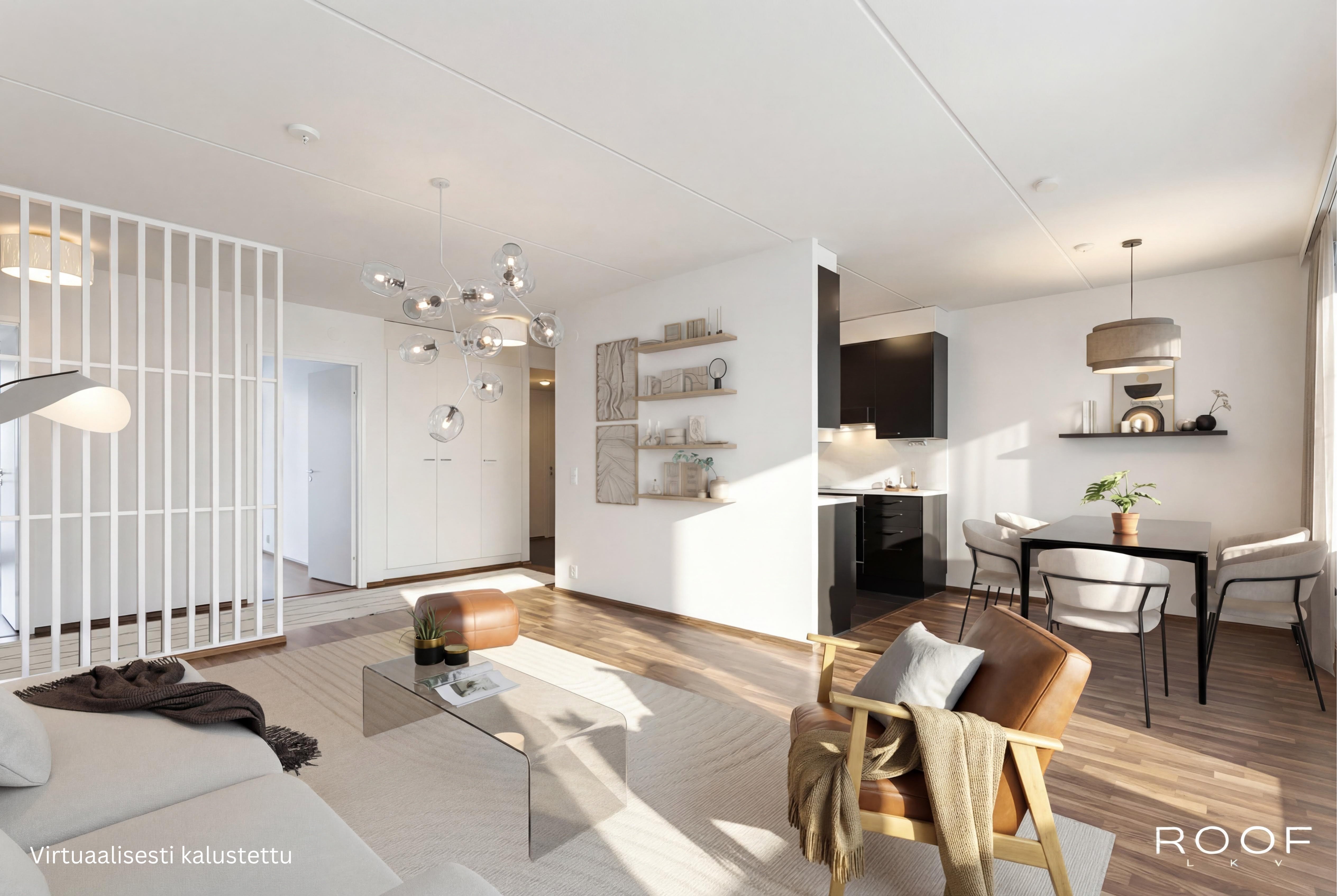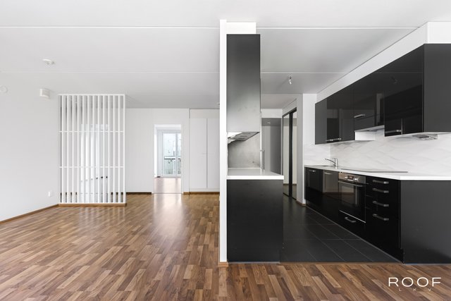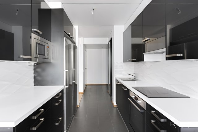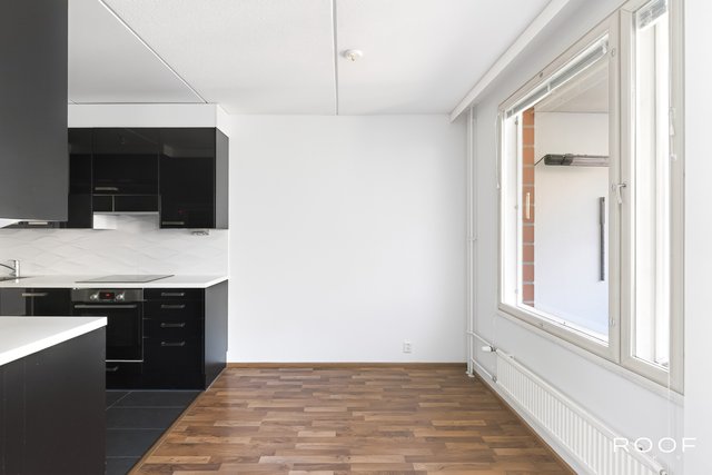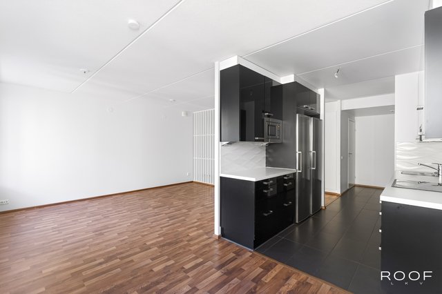 Keittiö on moderni ja tyylikäs, musta-valkoisella värimaailmalla. Kylpyhuone ja sauna tarjoavat rentouttavat puitteet arkeen, taloyhtiön kaikki märkätilat on peruskorjattu vuosina 2018–2020. Asunnossa on myös kodinhoitohuone, joka helpottaa arjen askareita.