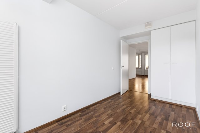 - Makuuhuoneissa tummanruskeaa parkettia, seinät on maalattu, vaatekaappeja. Kahdessa makuuhuoneessa ranskalainen parveke sisäpihan puolelle. Ranskalaisten parvekkeiden ovien vaihtoa harkitaan.