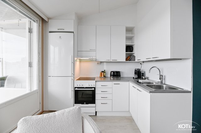 Asunnon keittiö on uusittu vuonna 2018 ja kylpyhuone vuonna 2019, joten ne ovat moderneja ja tyylikkäitä. Oma sauna ja parveke lisäävät asumismukavuutta entisestään. Taloyhtiössä on myös kattavat yhteiset tilat, kuten pesutupa ja kellarikomero.
