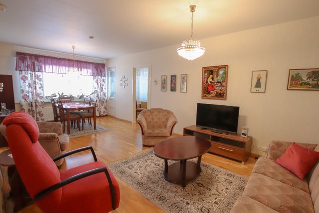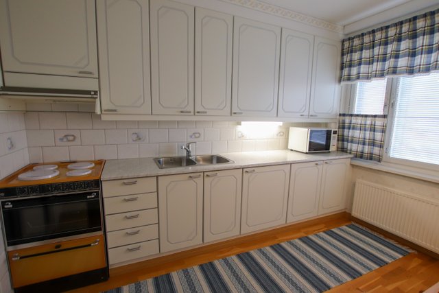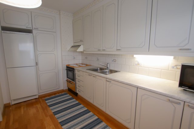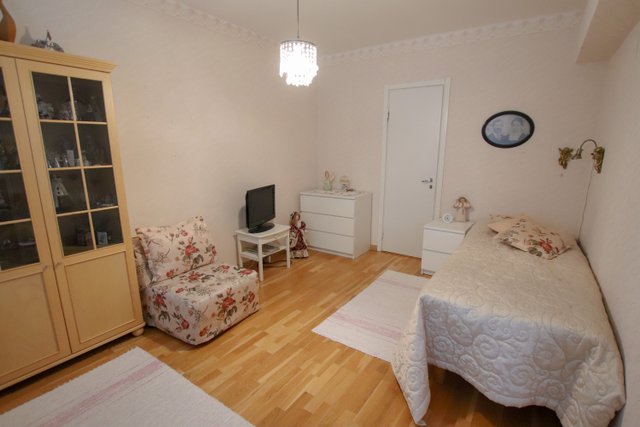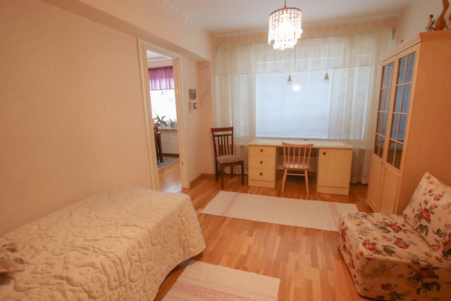 Asunto on hyvässä kunnossa ja sen lattiat ovat kaunista parkettia. Makuuhuoneessa on runsaasti säilytystilaa vaatehuoneen ja kaappien ansiosta.