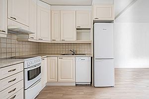 - Astianpesukone, jääkaappipakastin, liesi, liesituuletin, ja kiinteät valaisimet