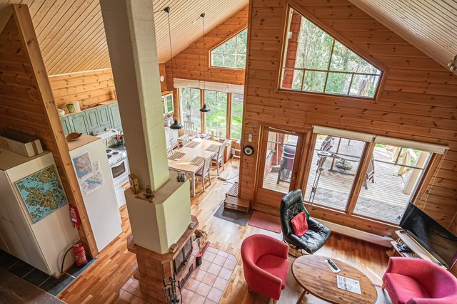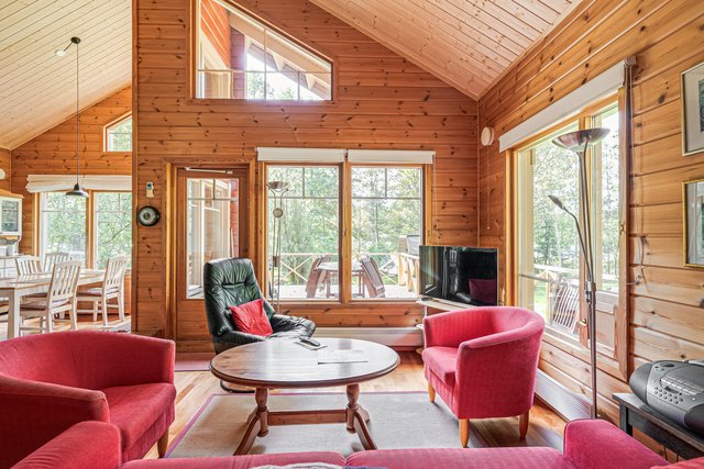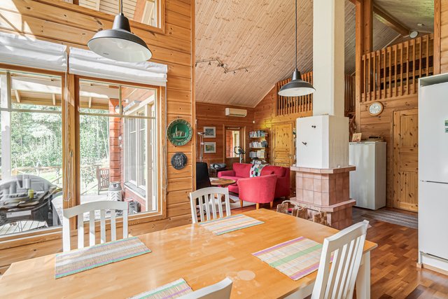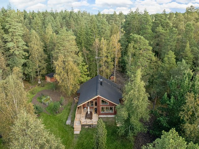 Päärakennus on noin 80 m² suuruinen Polar House -tyyppitalo, joka on rakennettu jylhästi ja ajatuksella ympärivuotista mökkeilyä varten. Korkea huonekorkeus luo avaruutta ja hyvät makuutilat mahdollistavat majoituksen kuudelle hengelle. Varusteluun kuuluu mm. astianpesukone, ilmalämpöpumppu sekä oma porakaivo, josta juomavesi tulee suodattimen kautta. Tunnelmaa ja lämpöä tuo komea varaava takka. Päärakennuksen suuri terassi on uusittu kokonaisuudessaan vuonna 2025.