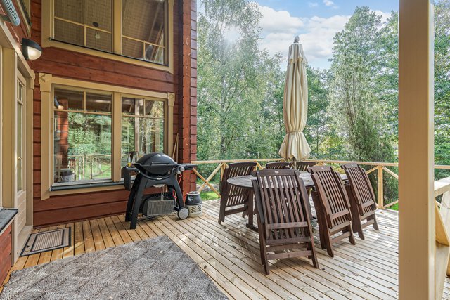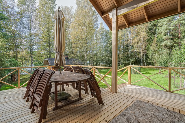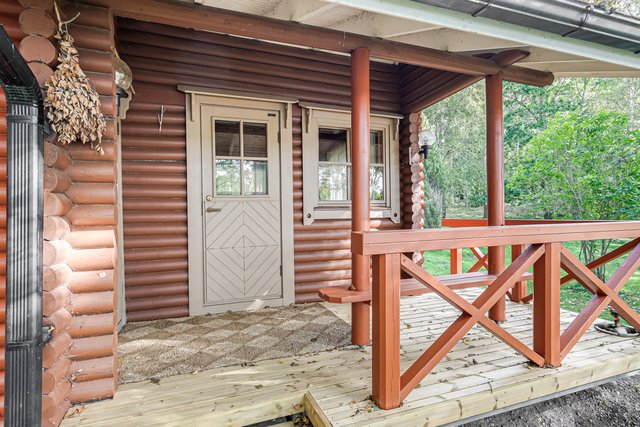 - Iso terassi mökin edustalla, uusittu 2025. Mökki maalattu 2024.