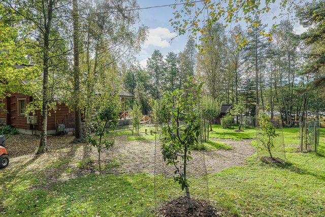 Tontti viettää loivasti kohti etelälounaaseen avautuvaa rantaa ja tarjoaa kauniit näkymät sekä erinomaisen yksityisyyden. Piha-alueella on nurmikkoa, marjapensaita ja puita, jotka luovat viihtyisän ympäristön. Maasto soveltuu hyvin myös hieman heikkojalkaisemmalle, ja tie johtaa perille asti.