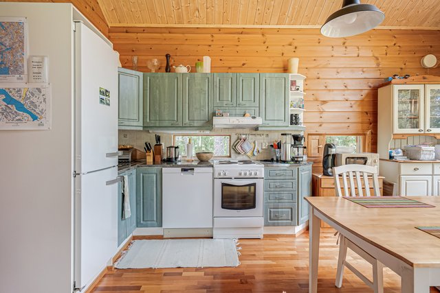 - Jääkaappipakastin, mikroaaltouuni, liesituuletin, liesi, erillisuuni, ja astianpesukone