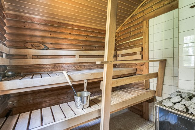 Rantasauna, kooltaan noin 20 m², on valmistunut vuonna 1990 ja se on läpikäynyt osittaisen peruskorjauksen 2013. Saunan terassilta on vain muutama askel omalle rannalle, jossa sijaitsee hyväkuntoinen ponttonilaituri. Veden syvyys laiturin päässä on noin 1,5 metriä, mikä tekee siitä käyttökelpoisen niin uimiselle kuin veneilyllekin.