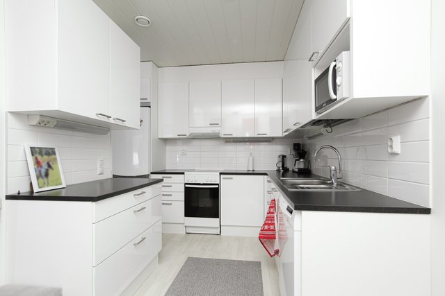 - Jääkaappipakastin, liesi, liesituuletin, ja astianpesukone