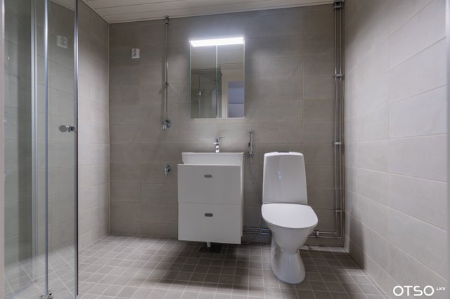 - WC-istuin, suihku, suihkukaappi, peilikaappi, allaskaappi, pesuallas, ja pesukoneliitäntä