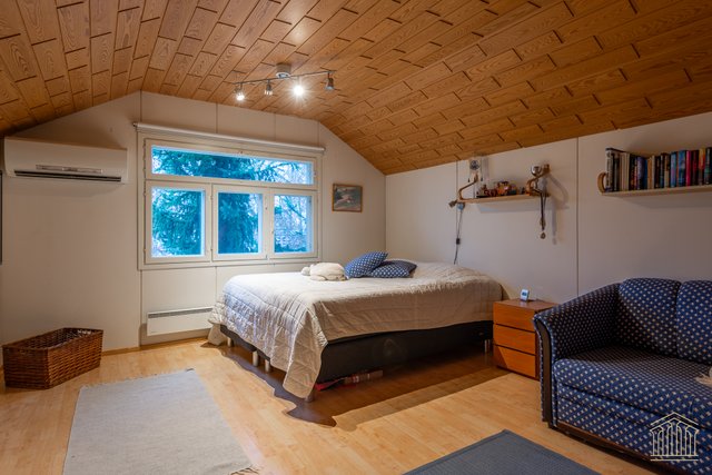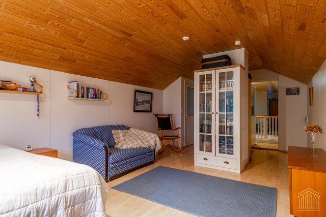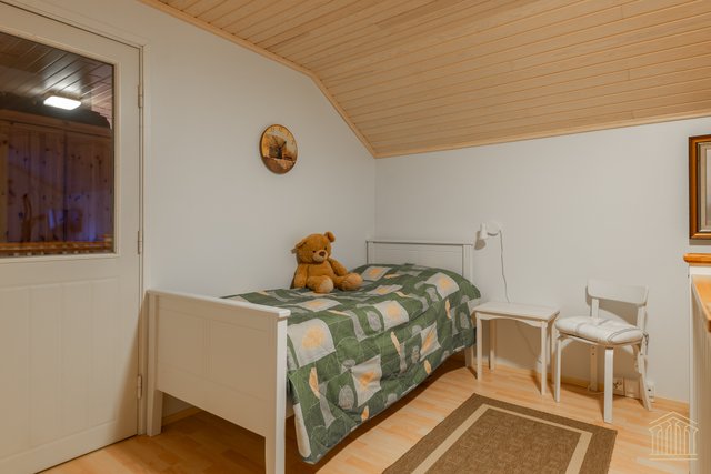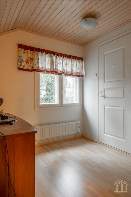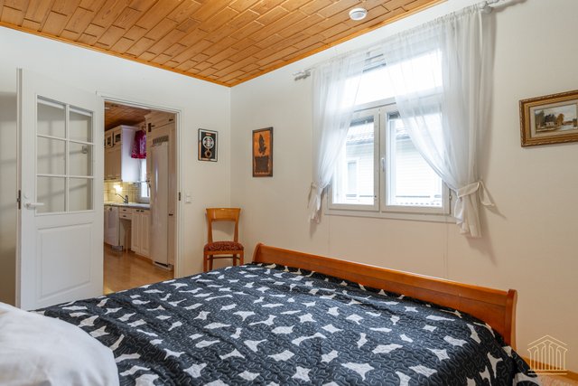 - Makuuhuone 1 (alakerta) Varusteet: kaapisto Lattiamateriaali: Pergo-laminaatti Seinämateriaali: tapetti Askertelutila/ Mh 2 (lämmin käyttöullakko): Varusteet: ilmalämpöpumppu Lattiamateriaali: laminaatti Seinämateriaali: tapetti Askartelutilan aulatila: Varusteet: erillinen wc Lattiamateriaali: laminaatti Seinämateriaali: tapetti