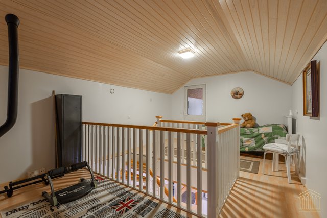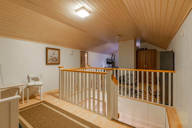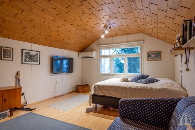 Yläkerran käyttöullakko on myöhemmin rakennettu lämpimäksi tilaksi, johon on saatu käytännöllisesti erillinen makuuhuoneena toimiva tila sekä työskentelytila erillisellä wc:llä.