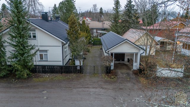 Nyt myynnissä suositulta Kalliomäen asuinalueelta kompakti omakotitalo ja erillinen autotalli- ja katosrakennus!