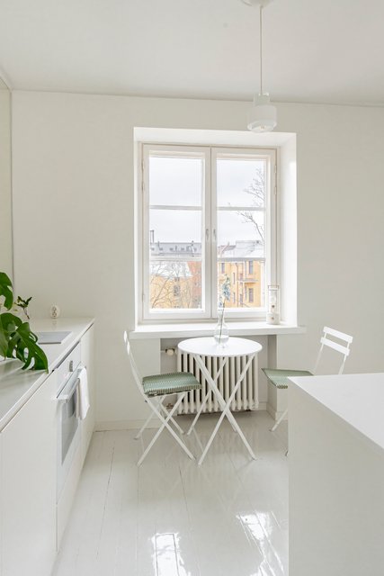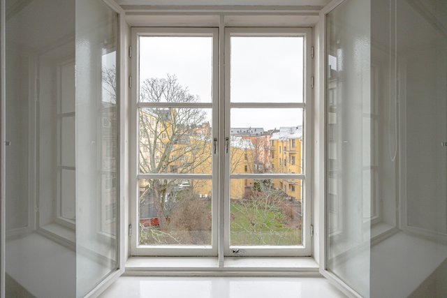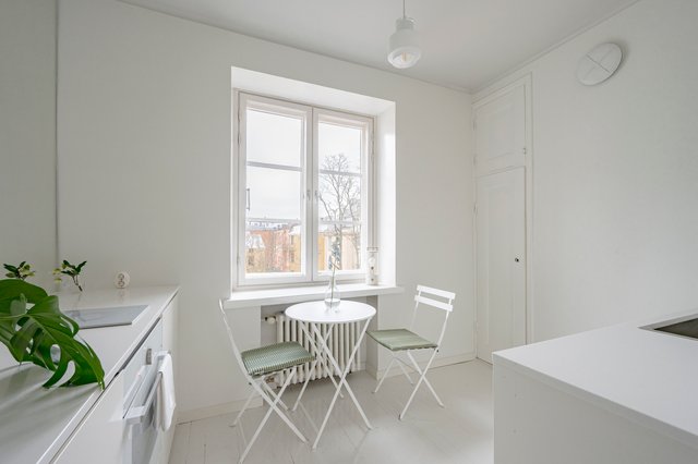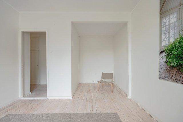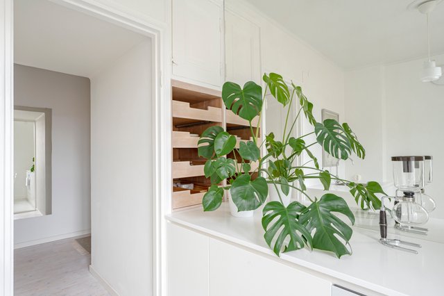 Kodissa on miellyttävä ja tasapainoinen tunnelma: vaaleasävyiset seinät heijastavat valoa kauniisti ja hurmaavat, ajan patinoimat puulattiat tuovat tiloihin lämpöä ja luonnetta. Pohjaratkaisu on toimiva ja tuntuu neliöitään suuremmalta. Kaikki asunnon ikkunat avautuvat rauhalliselle sisäpihalle, mikä tekee kokonaisuudesta poikkeuksellisen hiljaisen ja suojaisan.