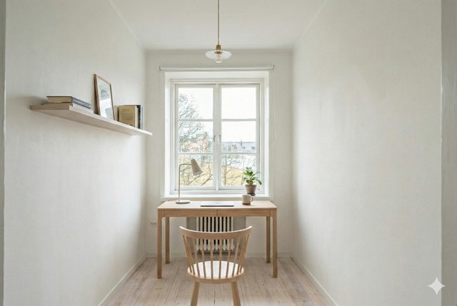 - Vaaleasävyiset seinät luovat tilaan valoisan ja rauhallisen ilmeen.