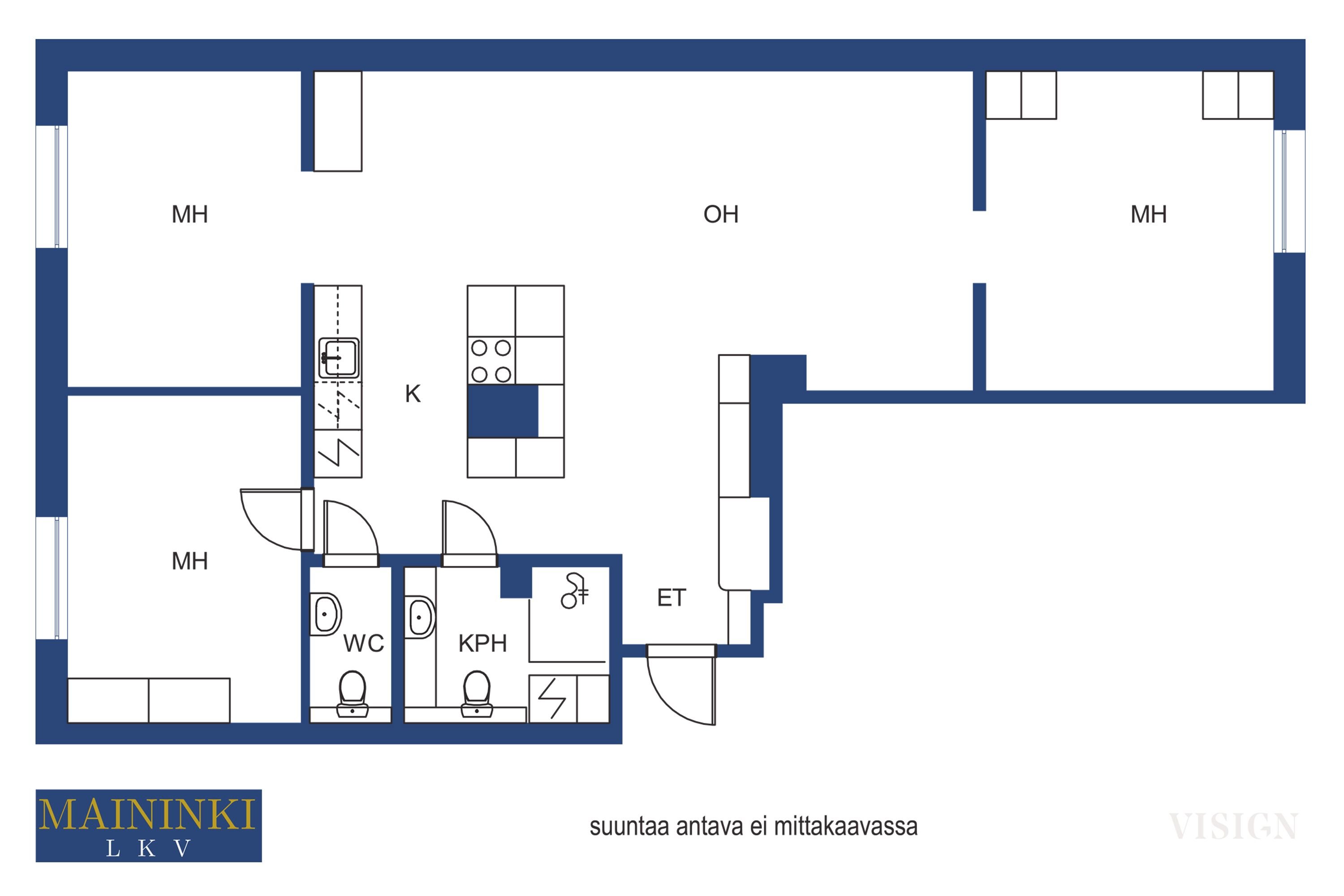 - Yhtiöjärjestyksen mukainen, Isännöitsijäntodistuksen mukainen, (Pinta-ala ei ole tarkistusmitattu ja todellinen pinta-ala voi olla suurempi tai pienempi, kuin ilmoitettu)