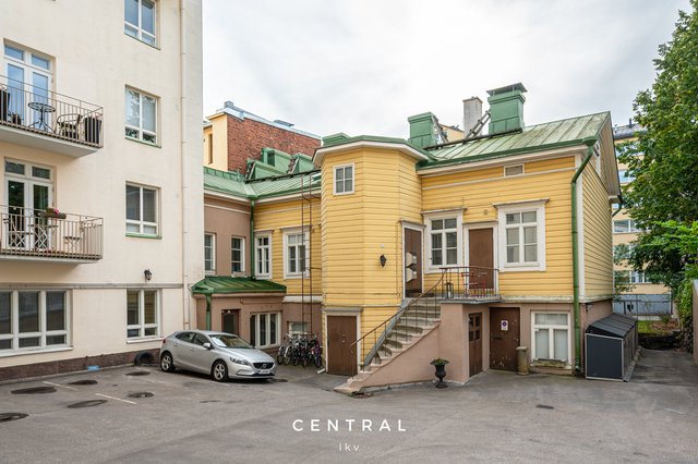 Rakennusmestari Elia Heikelin ja arkkitehti Selim A. Lindqvist 1889-90 toteuttama puinen piharakennus edustaa Ullanlinnan rakennuskannan historiallista kerroksellisuutta. Puutalon kivirakenteisessa pohjakerroksessa on toiminut makkaratehdas, joka myöhemmin on muutettu asuinhuoneistoksi. Tämä viime vuosina remontoitu kokonaisuus on todellinen helmi sinulle joka etsit jotain tavanomaisesta poikkeavaa: täällä asut kivenheiton päässä ihastuttavan Korkeavuorenkadun elävästä tunnelmasta, kuitenkin omassa sisäpihan rauhassa, täysin ainutlaatuisessa huoneistossa. Asuntoon kuuluu tunnelmallinen saunaosasto ja avarasta loft -henkisestä olohuoneesta on kulku taloyhtiön viihtyisälle piha-alueelle, jonka osasta on muodostunut epävirallisesti tälle asunnolle kuuluva etelään avautuva keidas.