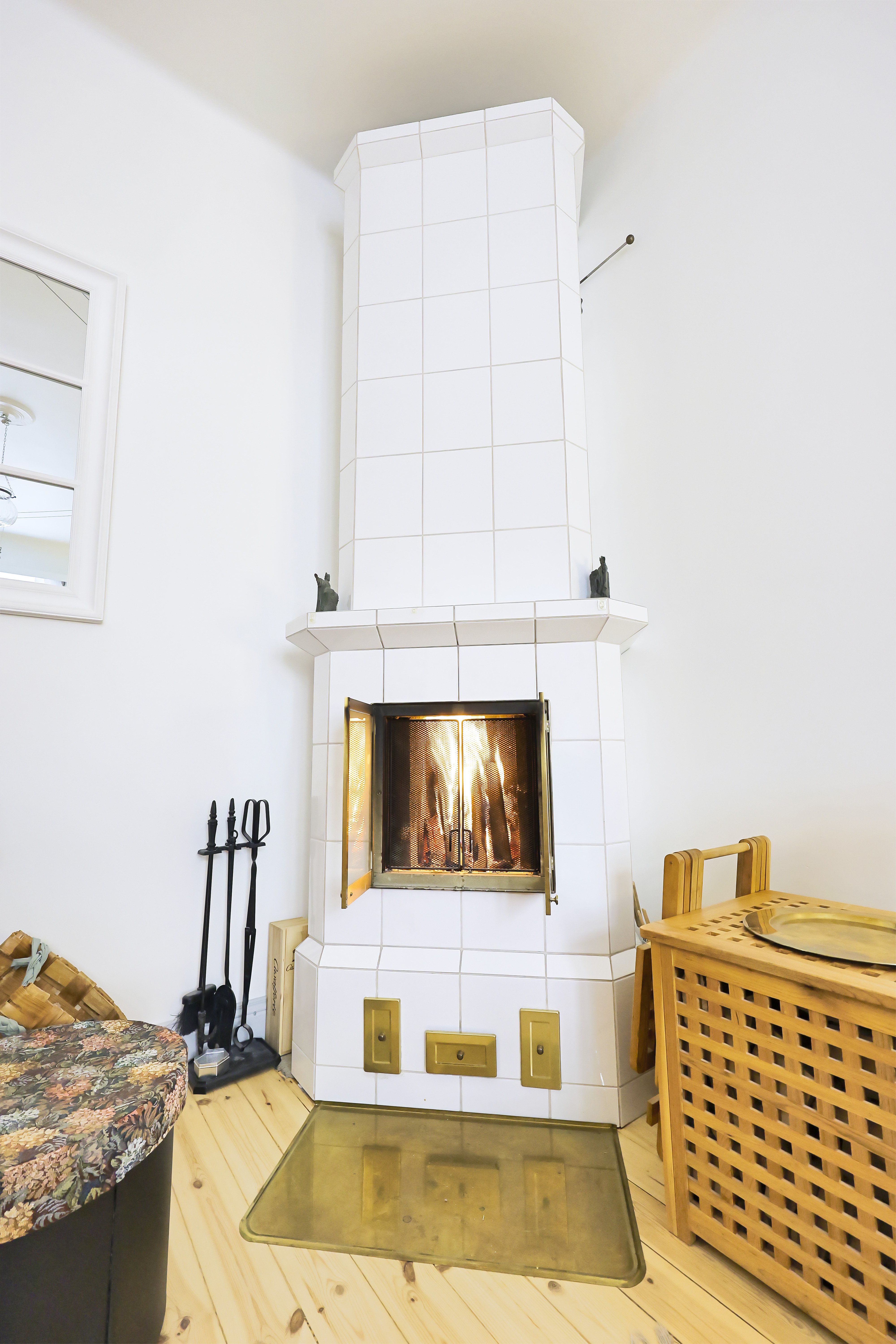 Asunnon korkeat huoneet tuovat tilaan ilmavuutta. Olohuoneessa on Uuniseppien varaava takka, joka luo lämpöä ja tunnelmaa viileinä iltoina. Makuuhuoneen ja eteisen liukuovikaapistoissa on runsaasti säilytystilaa, ja keittiön kaapistot ulottuvat kattoon asti, mikä maksimoi tilankäytön.