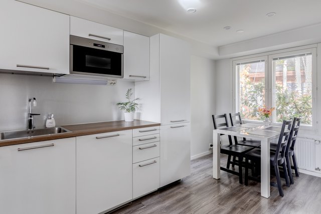 Huoltoyhtiö huolehtii yhtiön yhteisistä ulkoaluista läpi vuoden, joten tässä asunnossa nautit huolettomasta elämästä säässä kuin säässä. Rauhallisella alueella, hyvien kulkuyhteyksien ja loistavien ulkoilumaastojen lähellä on sinun hyvä asua.
