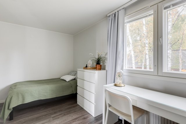 - Asunnossa on ilmalämpöpumput sekä ylä- että alakerrassa. Jokaisesta ikkunasta löytyy myös siistikuntoiset kaihtimet.