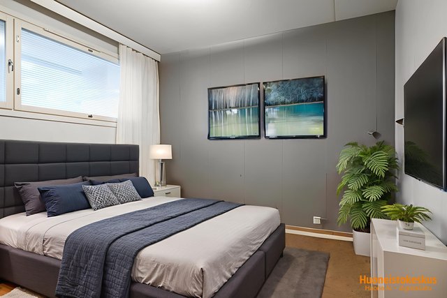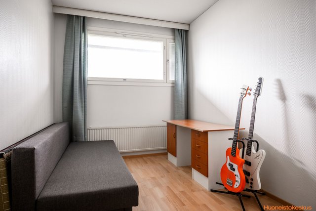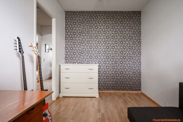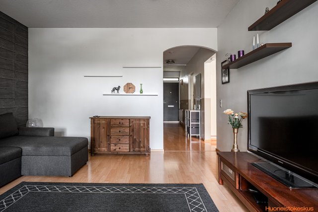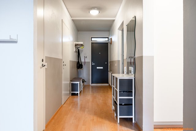 Asunnon keittiössä on vaaleat kaapistot, jotka on uusittu aiempien omistajien toimesta, ja varustukseen kuuluu korkea jääkaappi ja erillinen pakastin. Olohuoneessa ja makuuhuoneissa on helppohoitoiset laminaattilattiat, . Tilavassa kylpyhuoneessa on suihku ja pesukoneliitäntä, ja wc on järkevästi erillisenä.