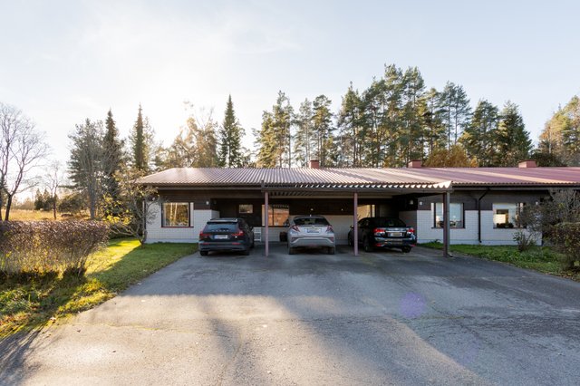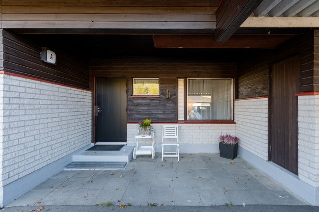 Asunnon piha-alueella on tilava terassi, jossa voi nauttia kesäpäivistä perheen ja ystävien kanssa. Autolle löytyy katospaikka, mikä helpottaa arkea erityisesti talvikuukausina.