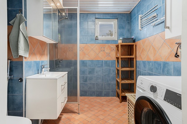 - Suihkuseinä, pesukoneliitäntä, wc-istuin, peilikaappi, suihku, allaskaappi, ja kiinteät valaisimet