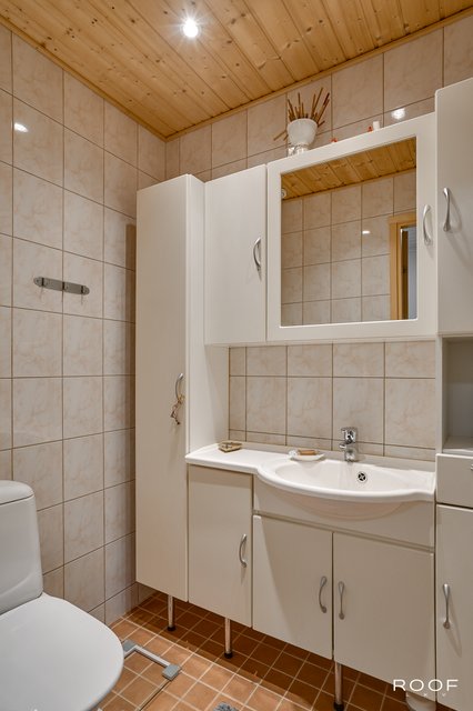 - Kylpyhuone uusittu 2006, vesieristykset, lattialaatoitukset ja kaakeloinnit, kaapistot, saunan sisäverhoukset, valot ja sähkökiuas (Aitokiuas alkuperäinen) Vesikiertoinen pesuhuoneen ja saunan lattialämmitys.