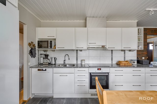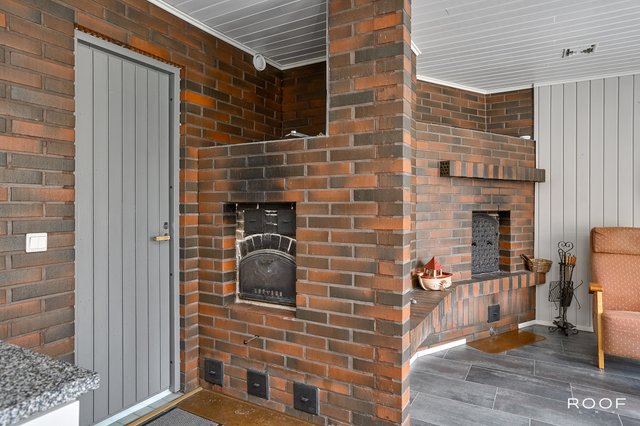 - Tupakeittiö, uusittu 2009 kylmälaitteet, liesi, uuni, kaapistot, sähköt, seinä- ja kattopinnat, lattia ja kiviset työtasot, mikro 2024, tiskikone 2025) Muurattu leivinuuni ja takka.