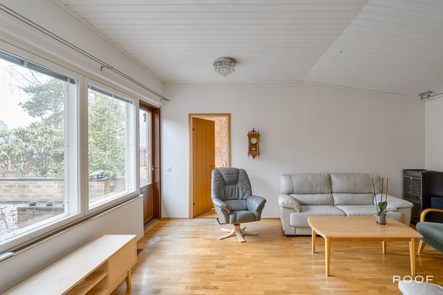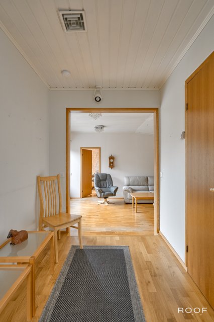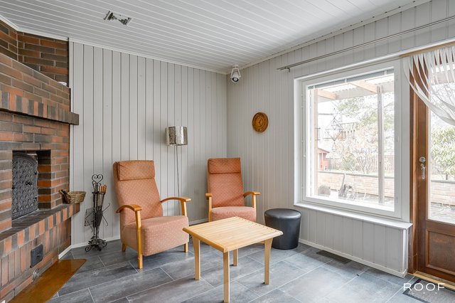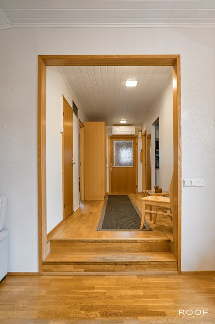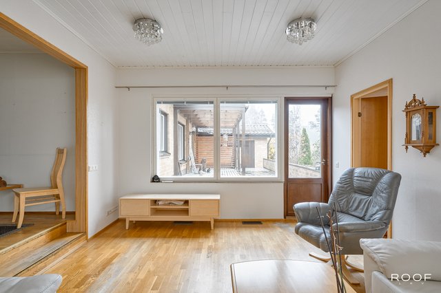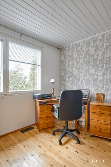 - Lattia parketti, laminaatti. Seinät tapetti, ikkunaseinä maalattu. Käynti terassille.