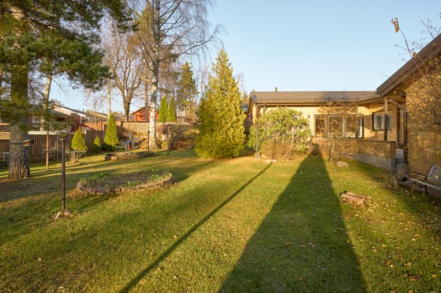 - Kaunis aidattu puutarhapiha. Hyvin hoidettu kulmatontti. Omena- ja kirsikkapuut, marjapensaita, istutuksia. Matto- ja pyykkitelineet.