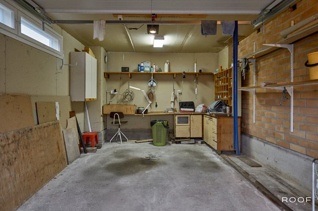 - Tiilivuorattu betonirunko. Yläpohja puurakenteinen.