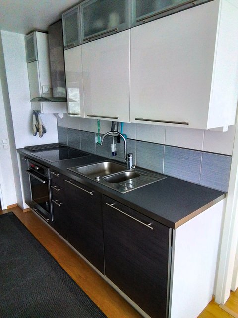 - Jääkaappipakastin, liesi, uuni, ja astianpesukone