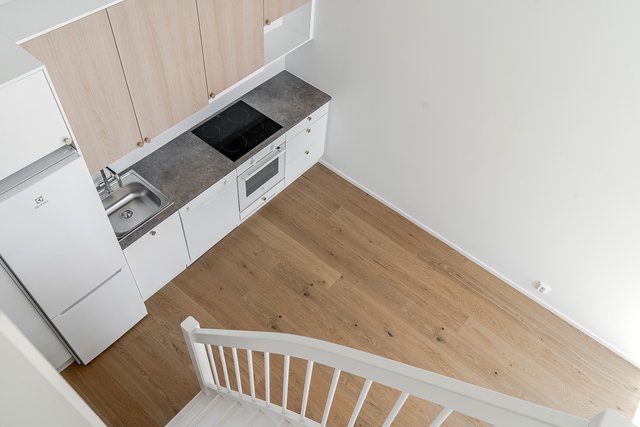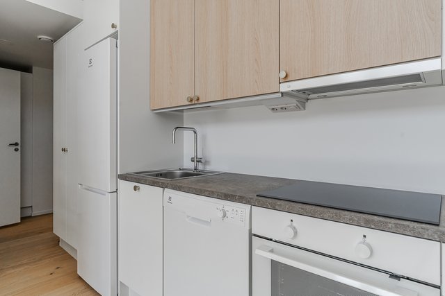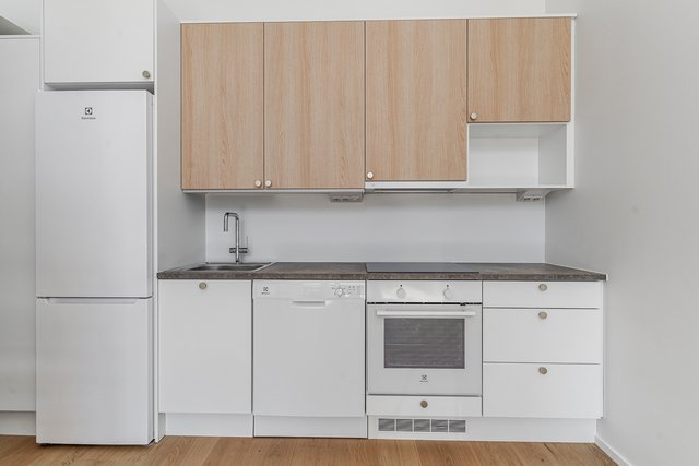 Asunnossa on moderni avokeittiö, joka on varustettu laadukkailla kodinkoneilla: induktioliesi, erillisuuni ja astianpesukone. Tyylikkäässä kylpyhuoneessa on lattialämmitys sekä pesukoneliitäntä, mikä lisää arjen mukavuutta.