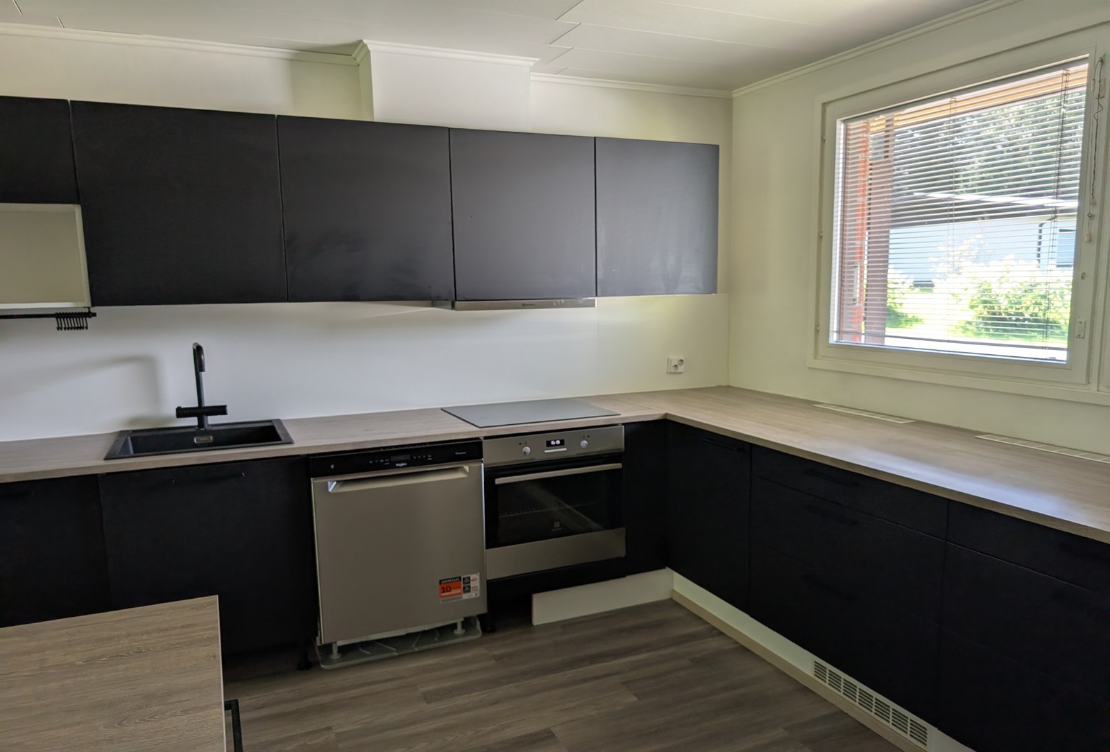- Erillisuuni, jääkaappipakastin, liesi, liesituuletin, astianpesukone, ja kiinteät valaisimet