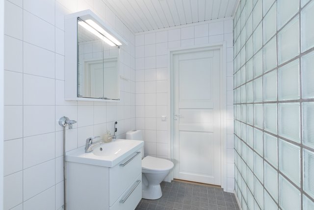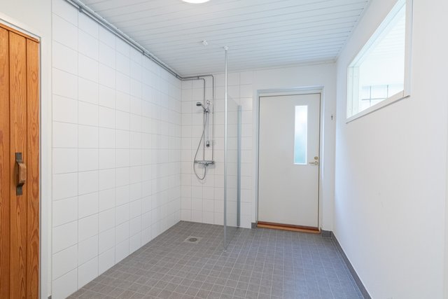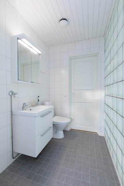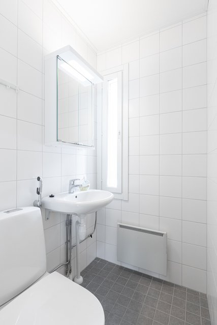 - Varustus: pesukoneliitäntä (yhdessä wc:ssä), lattialämmitys, peilikaappi. Lattia: laatta. Seinät: kaakeli.