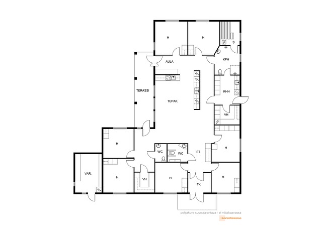 Tupakeittiö, 6 mh, 2 kph, s, 2 erill.wc, khh, 2 et, var, ter.