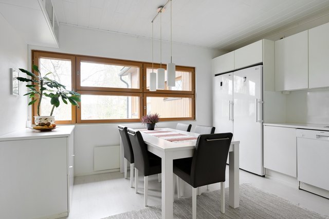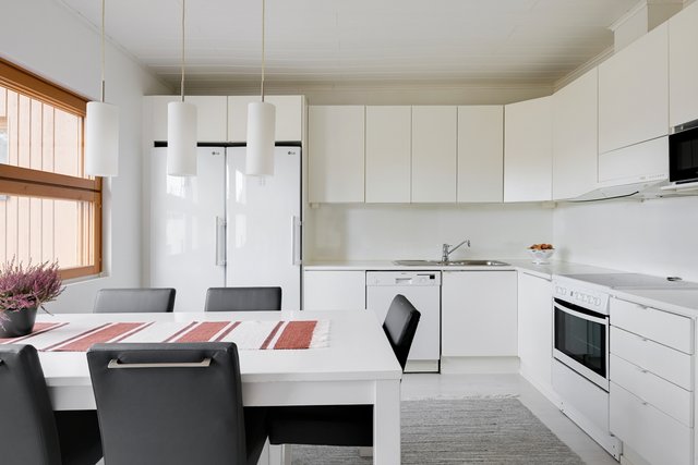 - Jääkaappi, erillinen pakastin, uuni, liesi, liesituuletin, ja astianpesukone