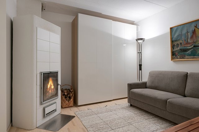 - Takkahuoneessa varaava takka, joka on nuohottu 10/2024.