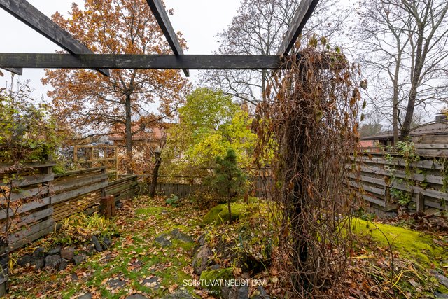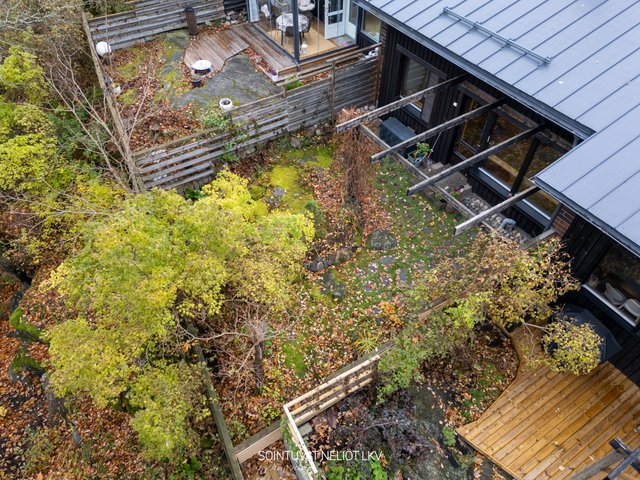- Puistomaiset pihanäkymät etelään ja pohjoiseen.