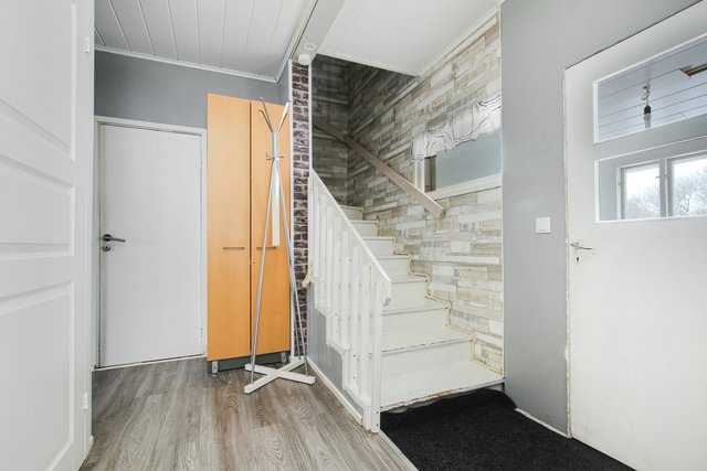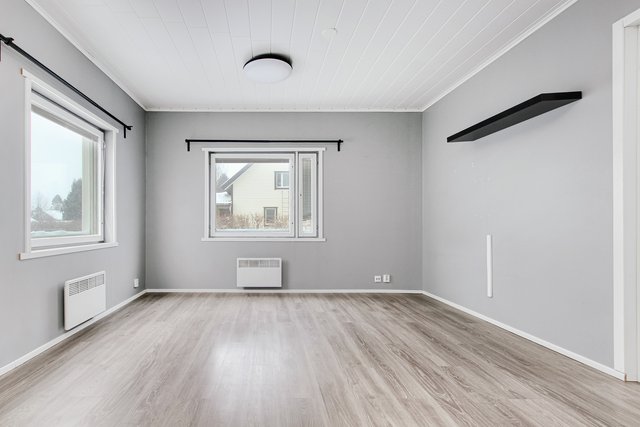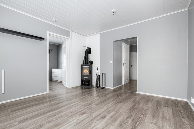 Talossa on kaksi makuuhuonetta, sekä tilava olohuone, jossa tunnelmaa luo kaunis takka. Keittiö on varustettu nykyaikaisilla kodinkoneilla, kuten induktioliesi ja astianpesukone, mikä tekee ruoanlaitosta vaivatonta. Kylpyhuoneessa on mukavuuksia kuten lattialämmitys ja pesukoneliitäntä ja talossa on kaksi wc:tä, mikä lisää arjen sujuvuutta.
