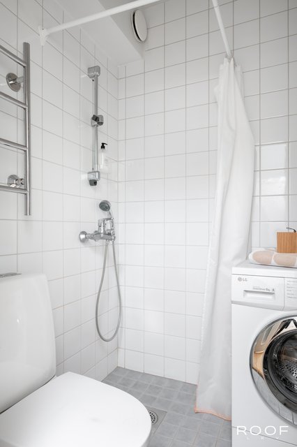 - WC-istuin, suihku, pesukoneliitäntä, lattialämmitys, ja pyyhekuivain