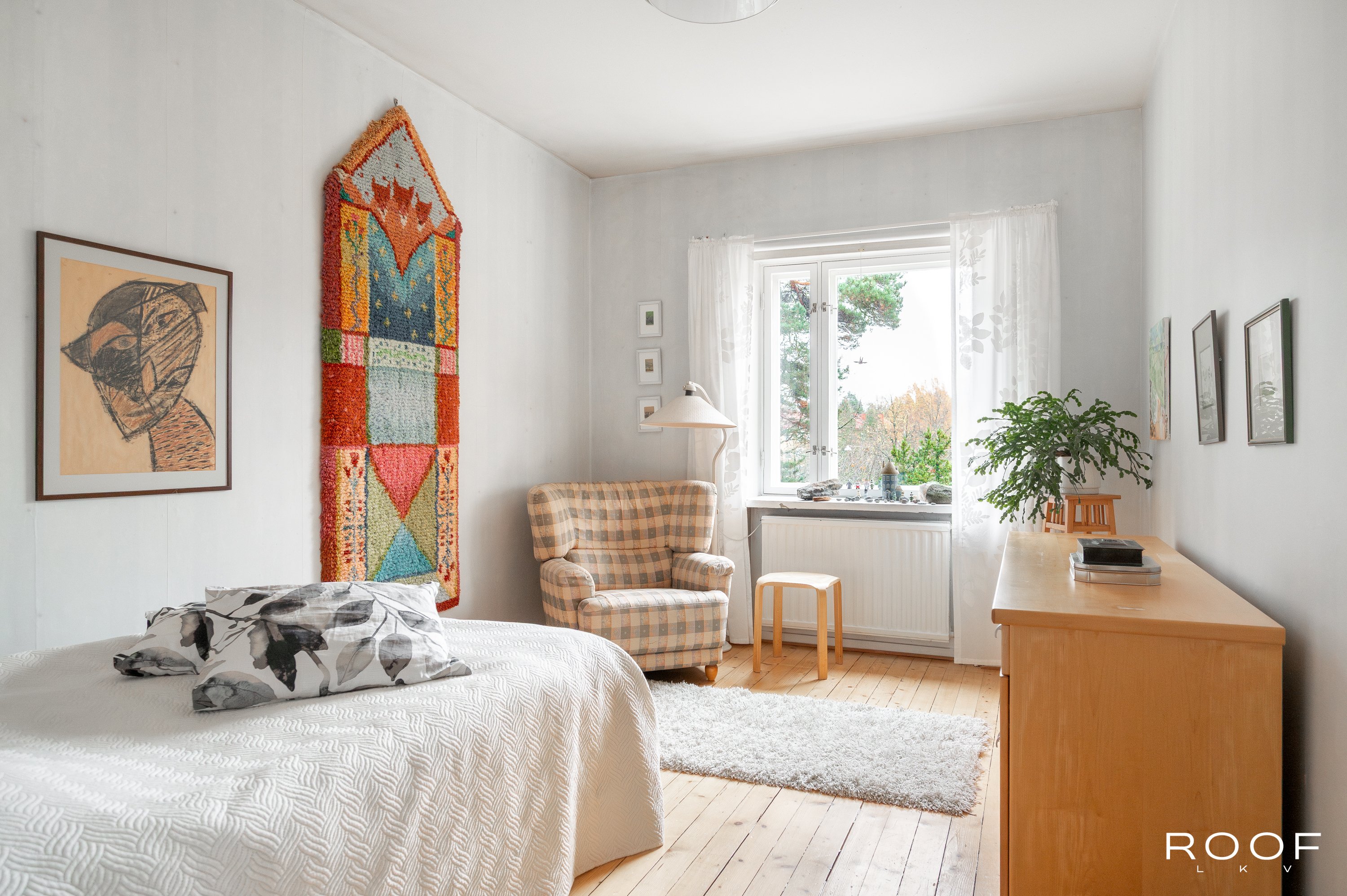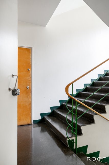Tunnelmallinen koti Hilding Ekelundin vuonna 1943 suunnittelemassa talossa. Ensimmäisen kerroksen asunto, ei katutasossa — sisälle ei ole suoraa näköyhteyttä, joten koti tarjoaa miellyttävän yksityisyyden.