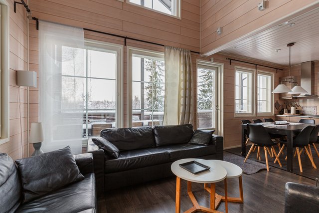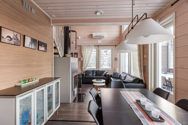 Huvilan sisätiloihin on myös panostettu näyttävillä ja ajattomilla valinnoilla, pintamateriaalit, varusteet, koneet, laitteet, talotekniikka ovat laadukkaita, kestäviä ja huolto varmoja.
